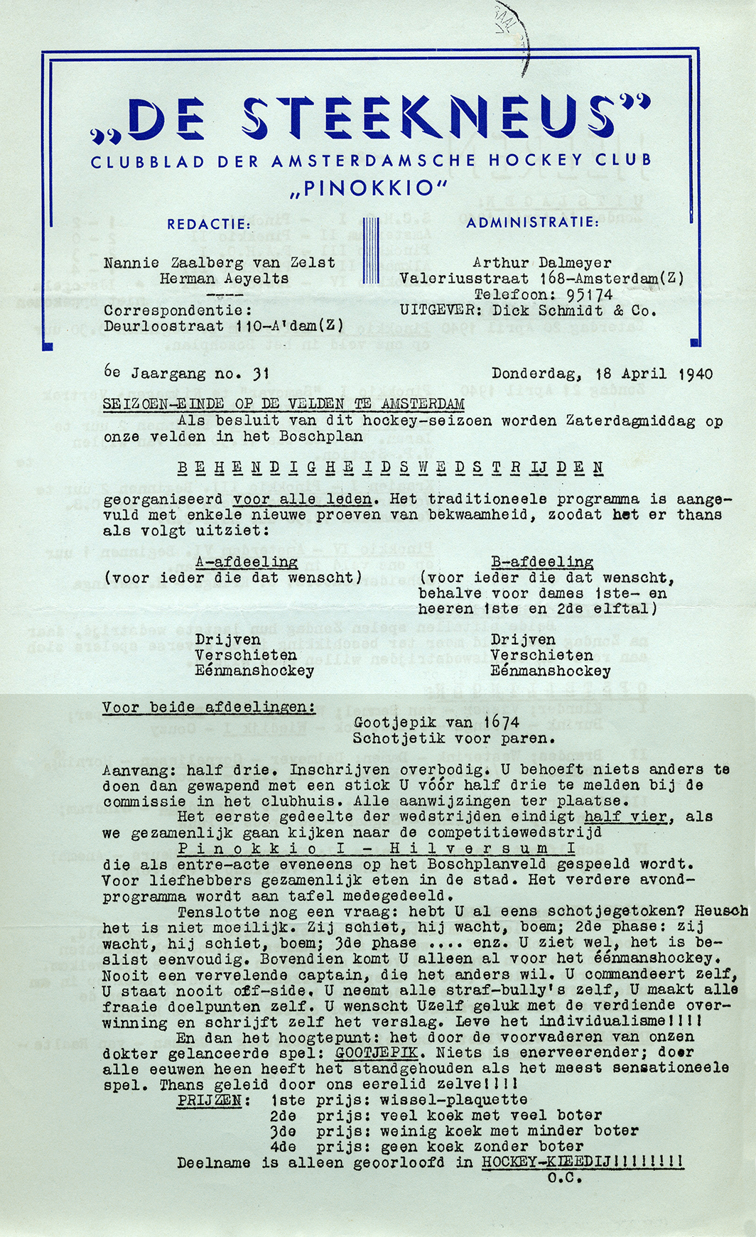 07-12-1938 - Pinokkio 1 in Hockey Sport